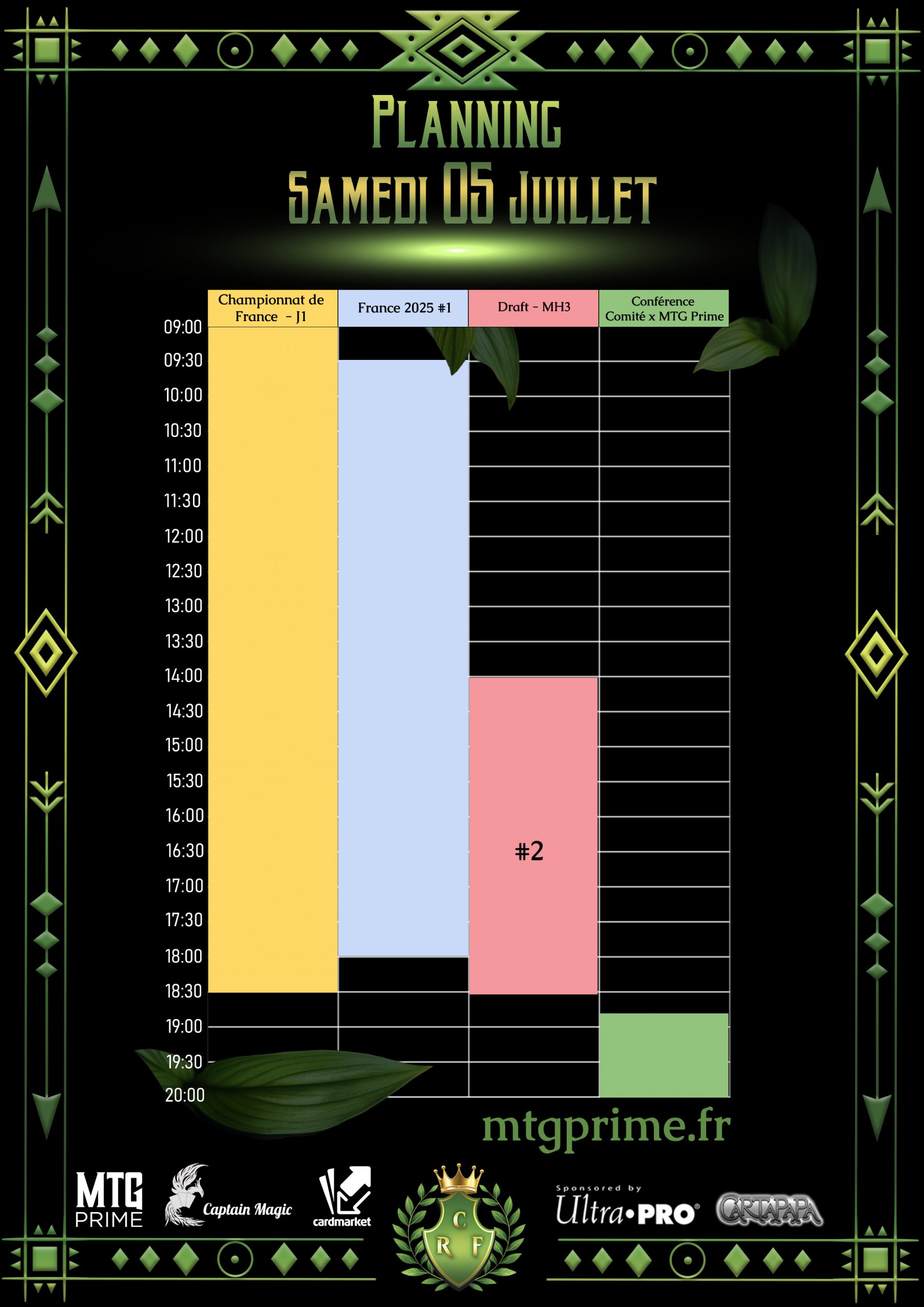 Cette liste sera complétée par le classement entretenu par OneSauk pour atteindre 64 personnes. 6 rondes suivi d’un TOP8 en élimination directe détermineront notre premier vainqueur de trophée du weekend. C’est LE tournoi d’ouverture de ce Championnat de France, peut-être que le ou la vainqueur du Main Event sera déjà au sein de ce tournoi. Il sera retransmis en direct durant toute la journée sur la chaîne YouTube MTG Prime.
